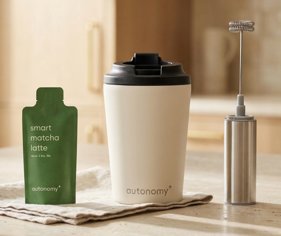 Your matcha ritual. Anywhere, in less than a minute.Organic matcha, adaptogenic mushrooms, and macadamia - just add hot water for a creamy, focused latte that goes wherever you do.